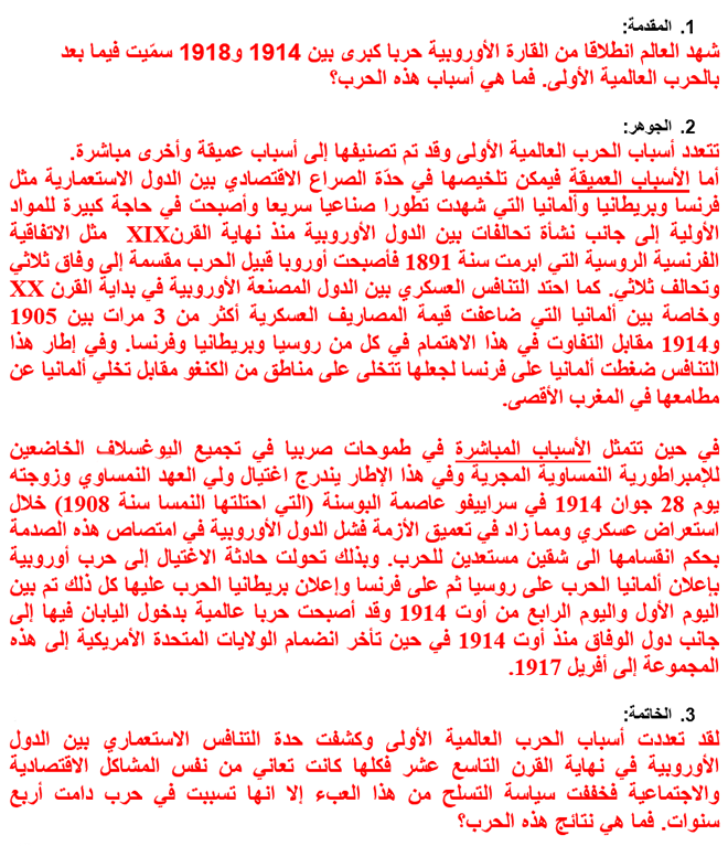 إصلاح تمارين الدرس 1: الحرب العالمية الأولى الأسباب وأبرز النتائج