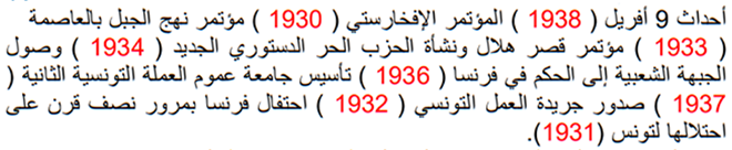 إصلاح تمارين الدرس 3: الحركة الوطنية التونسية في الثلاثينات