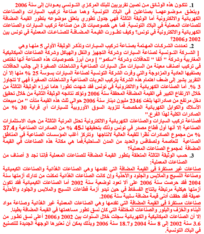 إصلاح تمارين الدرس 7: التنمية الصّناعيّة بالبلاد التونسيّة
